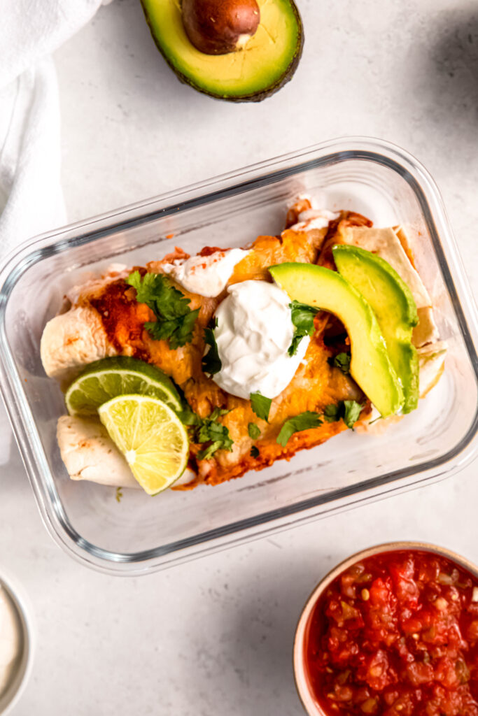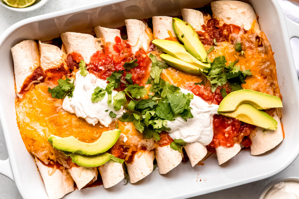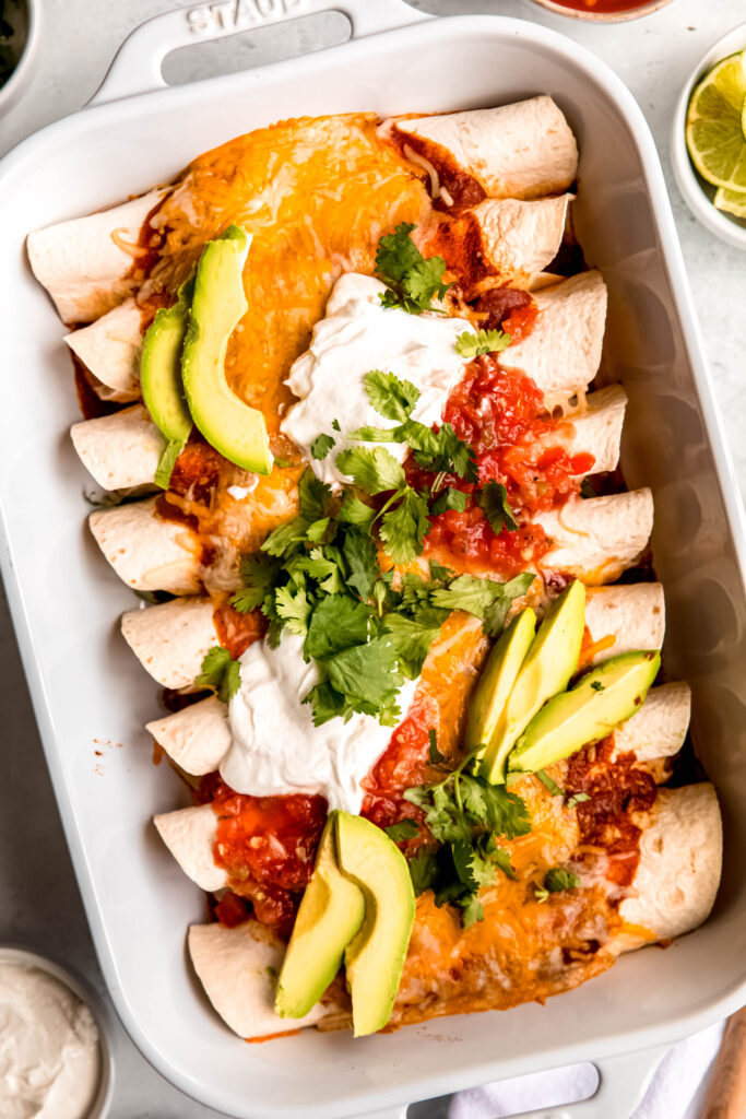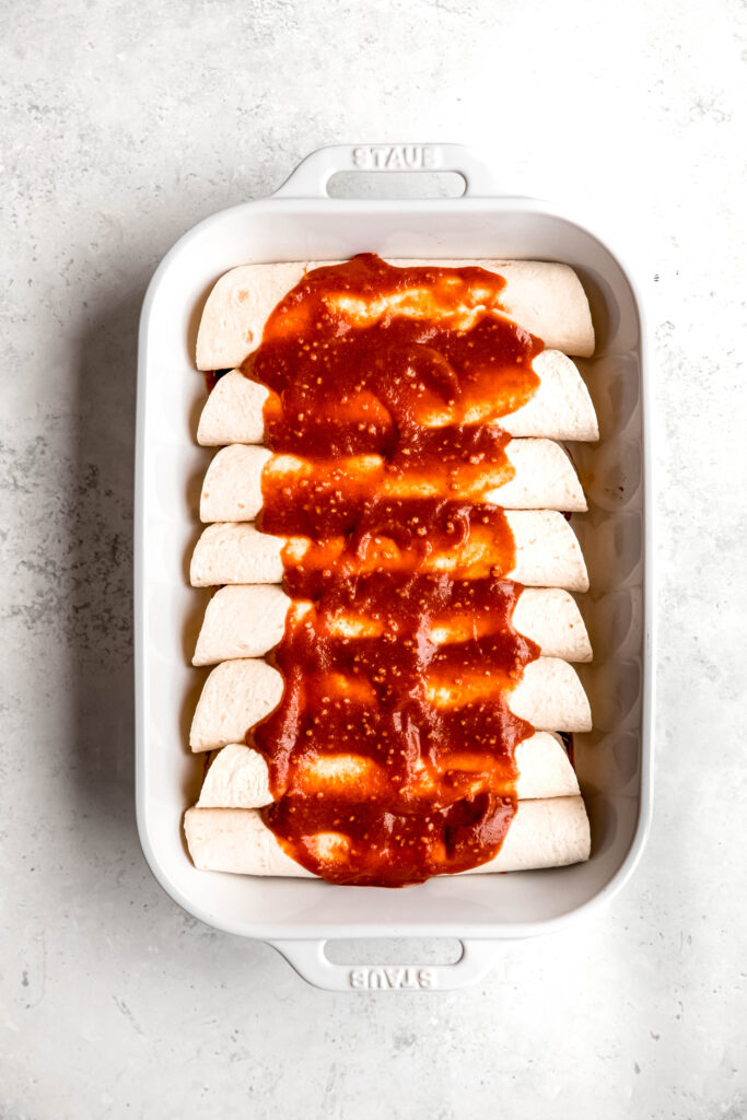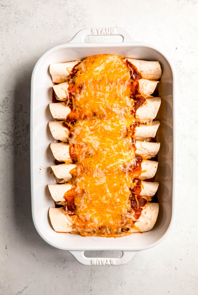 Absolutely! These easy enchiladas are 100% meal-prep approved. You can assemble everything up to 24 hours in advance. Just cover and refrigerate, then pop them in the oven when you’re ready to eat.