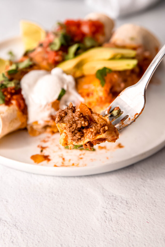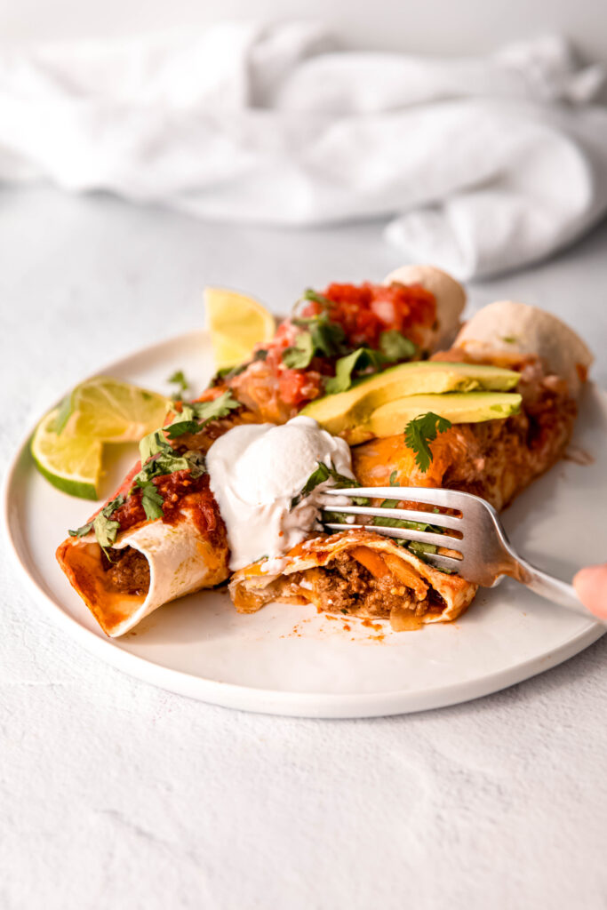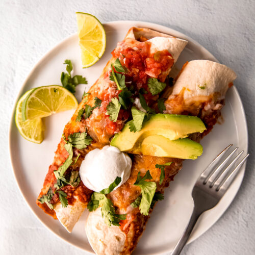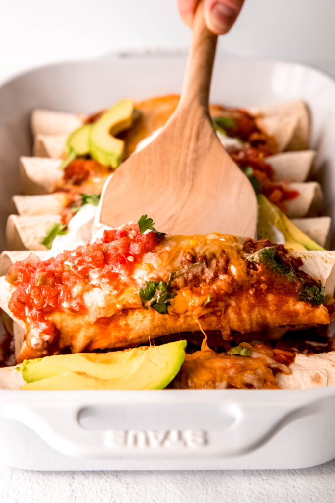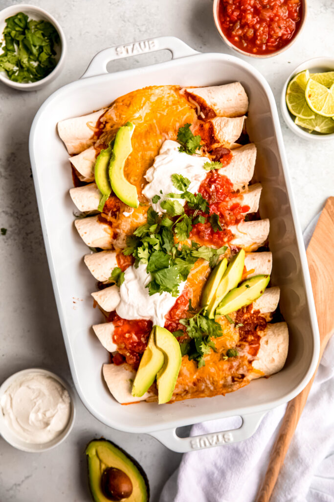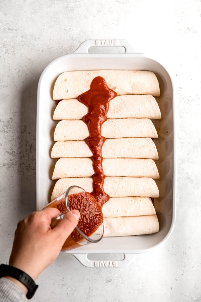 Absolutely! These easy enchiladas are 100% meal-prep approved. You can assemble everything up to 24 hours in advance. Just cover and refrigerate, then pop them in the oven when you’re ready to eat.