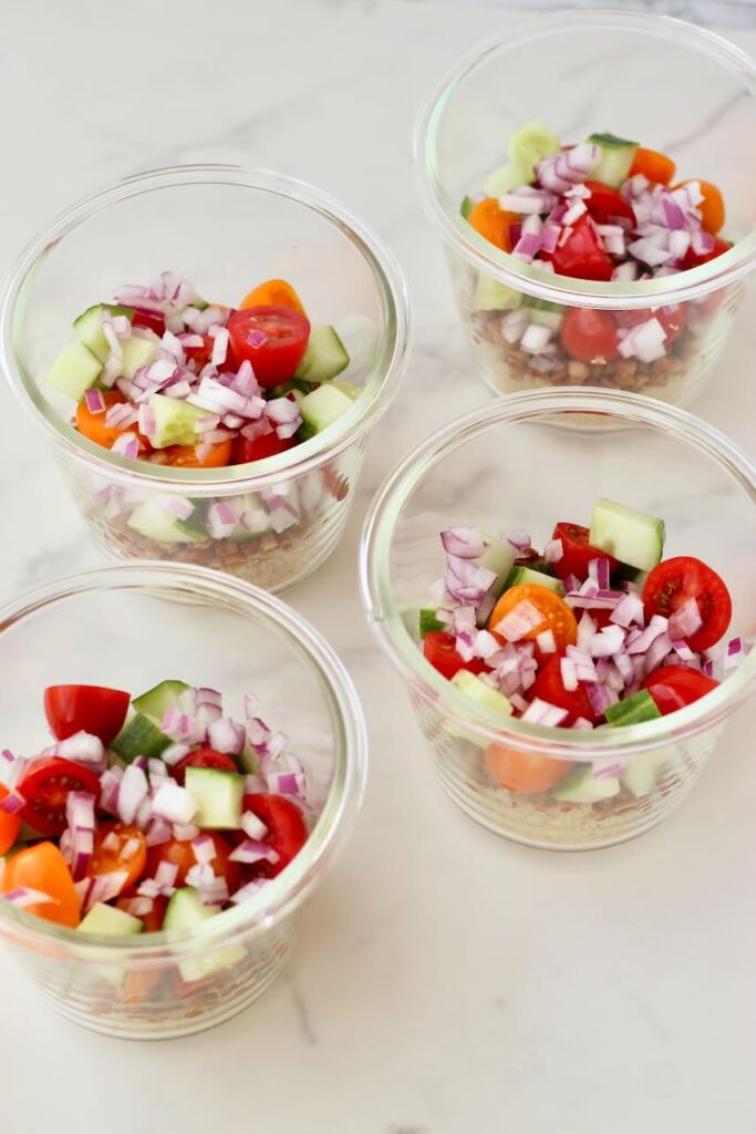 • Veggie variety: Cucumbers, tomatoes, and red onion add antioxidants, hydration, and flavor.