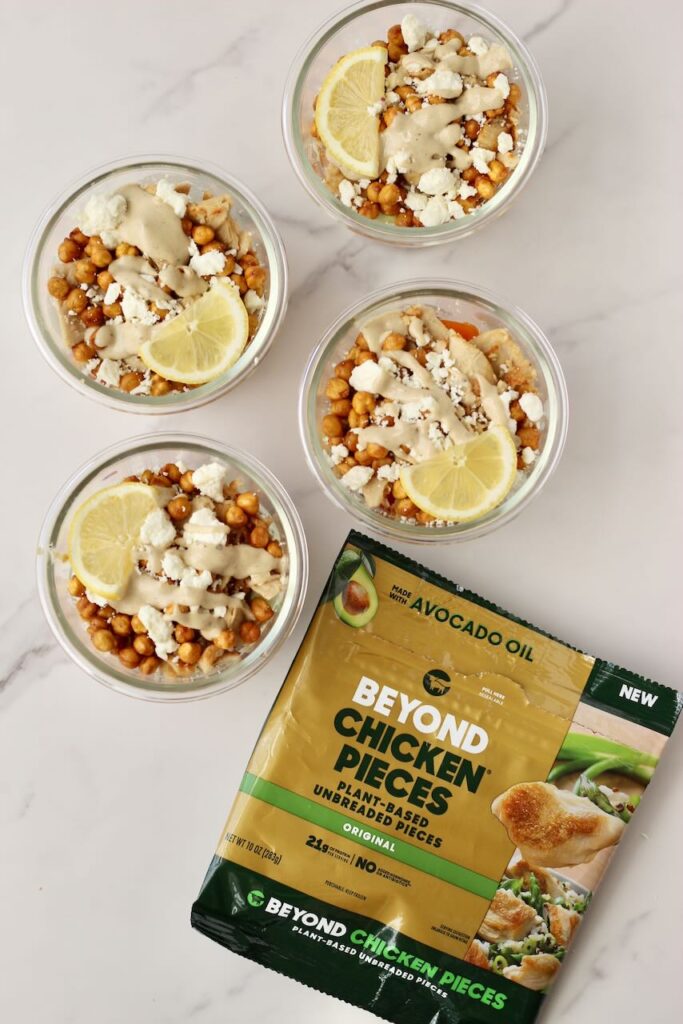 • Protein of your choice: Whether you’re feeling grilled chicken, pan-seared salmon, or crispy tofu, any protein works here. For a plant-based option, lentils and chickpeas already bring solid protein power. I often like to use Beyond’s new Chicken pieces here (as pictured!)