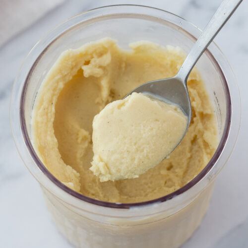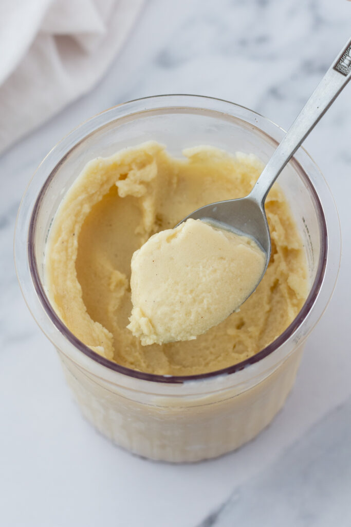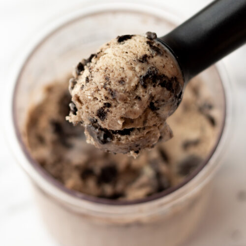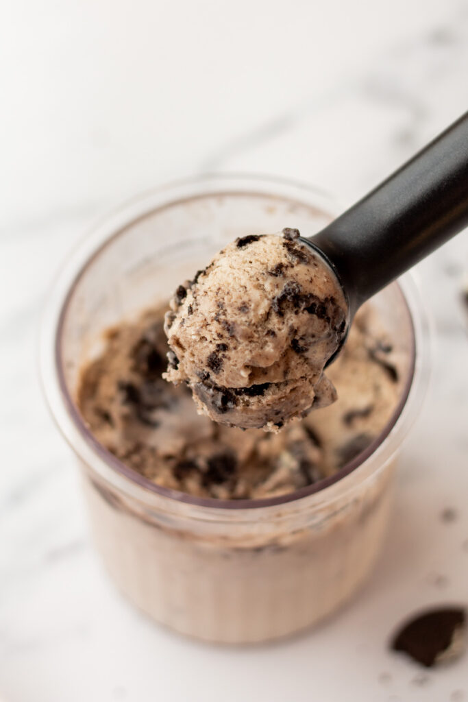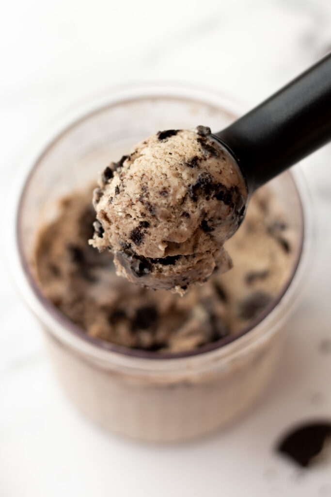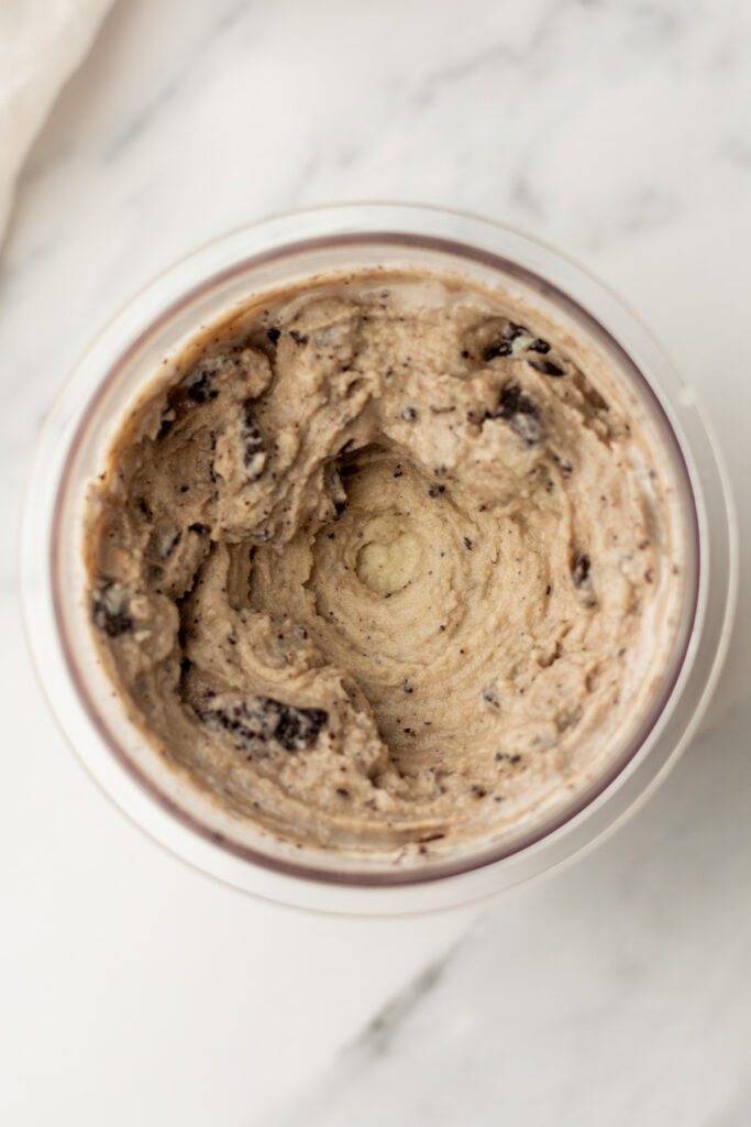 If you don’t have the whole pint right away, you can totally pop it back in the freezer, and keep it for up to 2-3 months. You can re-spin up to three times, but I usually just let it sit out on the counter for 20–25 minutes. If you’re in a hurry, a quick 10–15 second microwave burst does the trick too!