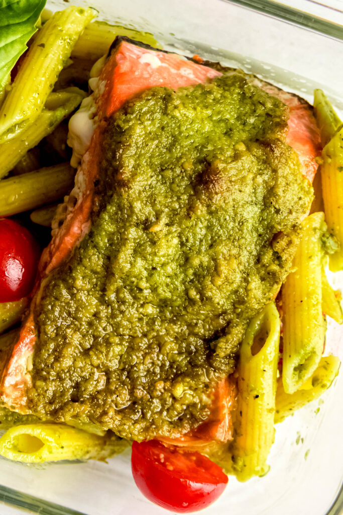 Yes! The pistachio pesto can be made ahead and stored in the fridge for 5–7 days or frozen for up to 3 months. Cooked salmon can also be prepped in advance and stored in an airtight container in the fridge for 3–4 days. Reheat gently in the oven or enjoy cold on salads, grain bowls, or wraps.