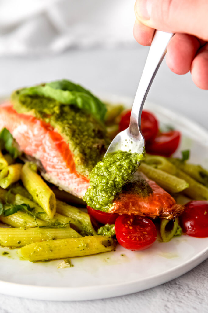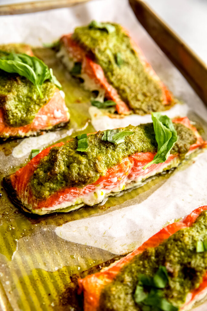 This easy salmon pesto is the kind of dish you’ll want to make again and again—simple to prep, full of flavor, and packed with nutrients.